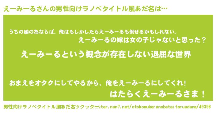 | ヒーロー風カッコイイあだ名 | 『ネオエーミール』『魔戒騎士エー』 |