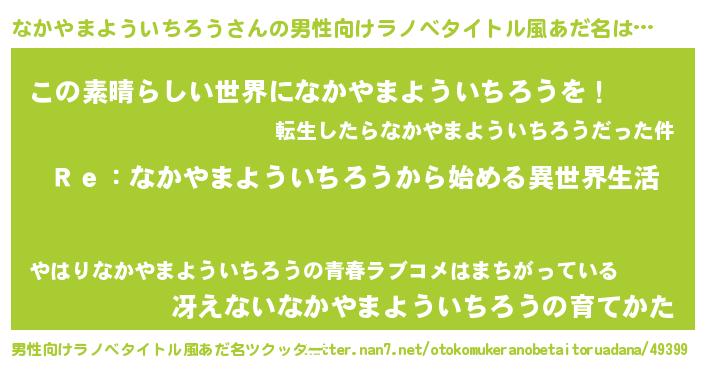 | 意味不明あだ名 | 『自称なかやまよういちろう』 |