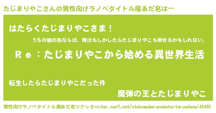 | 胡散臭い通販商品みたいなあだ名 | 『テレビで話題の高麗人参…その名も「たじまりやこ」』 |