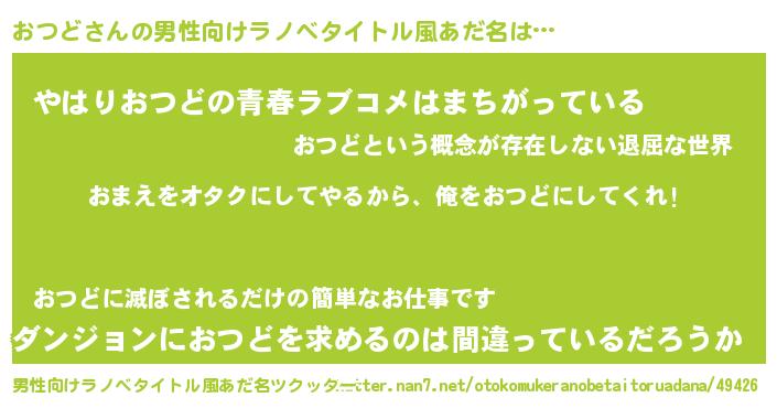 | 女子向けラノベタイトル風あだ名 | 『おつど夫妻のなれそめ』 |