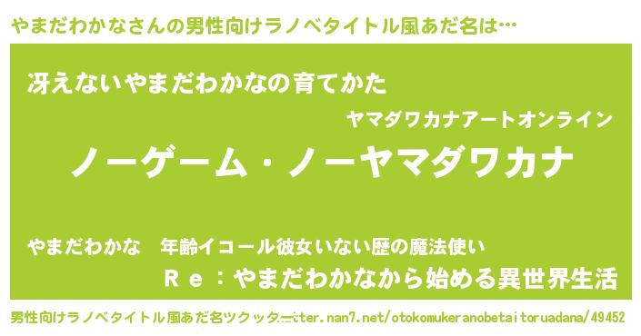 | ヘコむあだ名 | 『やまふぇ~』『やまだわかな(小並感)』 |