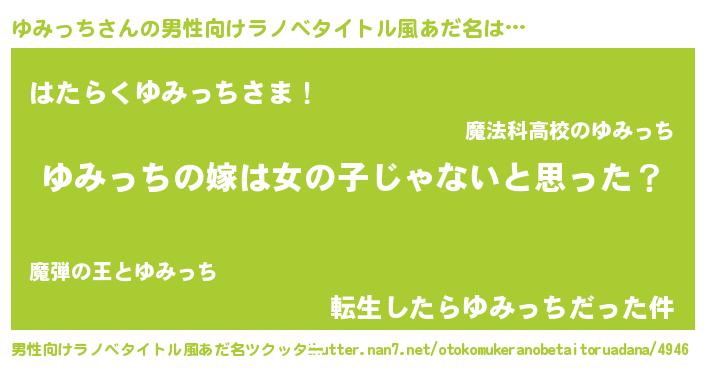 | 胡散臭い通販商品みたいなあだ名 | 『伝統あるサプリメント…その名も「ゆみっち」』 |