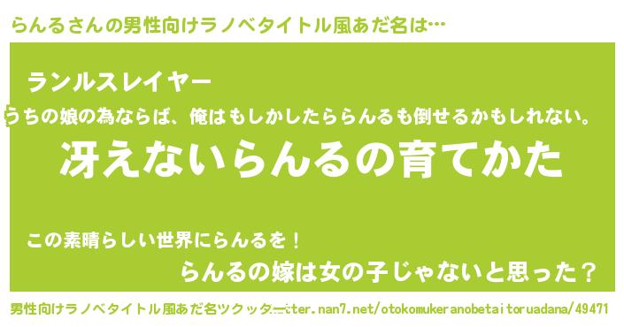 | ヒーロー風カッコイイあだ名 | 『魔戒騎士ラン』『ウルトラらんるマン』 |