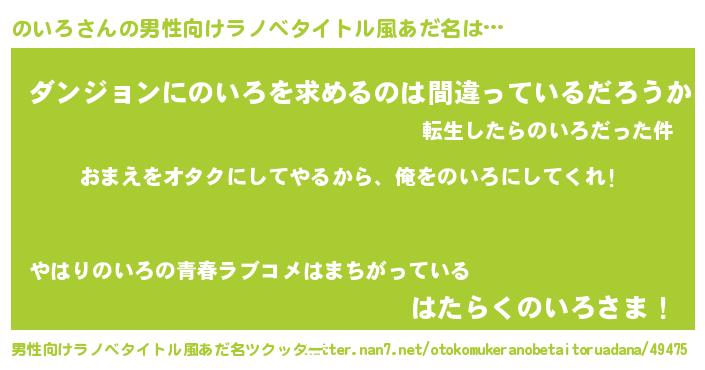 | 女子向けラノベタイトル風あだ名 | 『のいろ夫妻のなれそめ』 |