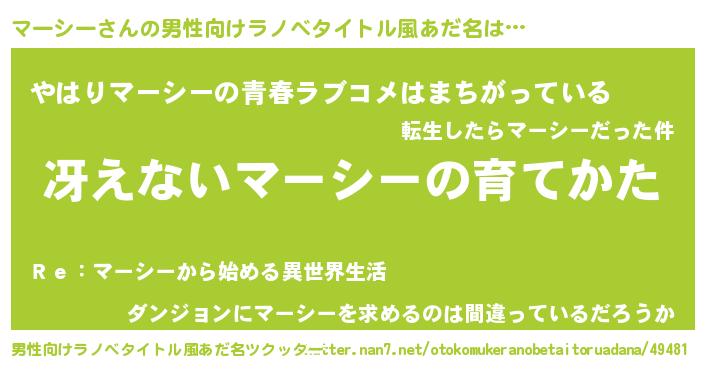| 女子向けラノベタイトル風あだ名 | 『シンデレラマーシー家の靴箱館』 |