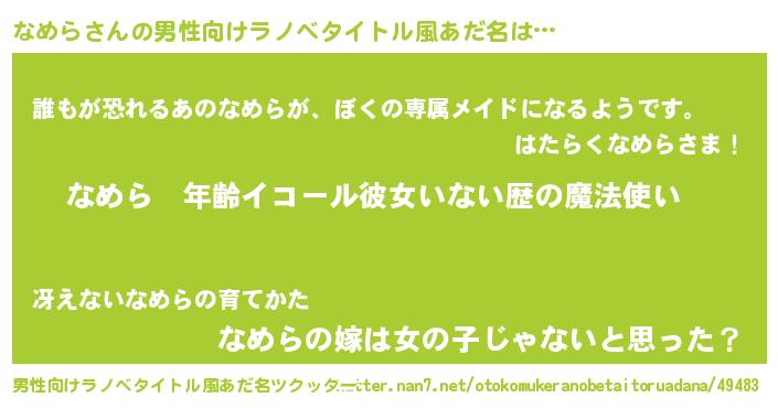 | ヒーロー風カッコイイあだ名 | 『ネオナメラ』『銀牙騎士ナメ』 |