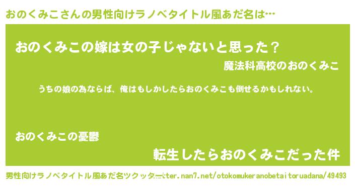 女子向けラノベタイトル風あだ名 | 『おのくみこの婚約者』 |