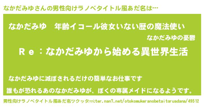 | 意味不明あだ名 | 『自称なかだみゆ』『永久保存なかだみゆ』 |
