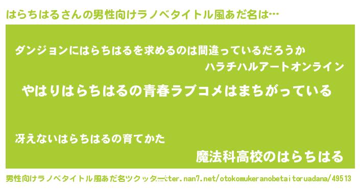 | 女子向けラノベタイトル風あだ名 | 『はらちはる伯爵の花嫁』 |