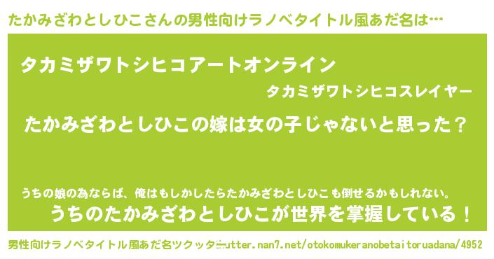 | 女子向けラノベタイトル風あだ名 | 『たかみざわとしひこ様がみてる』 |