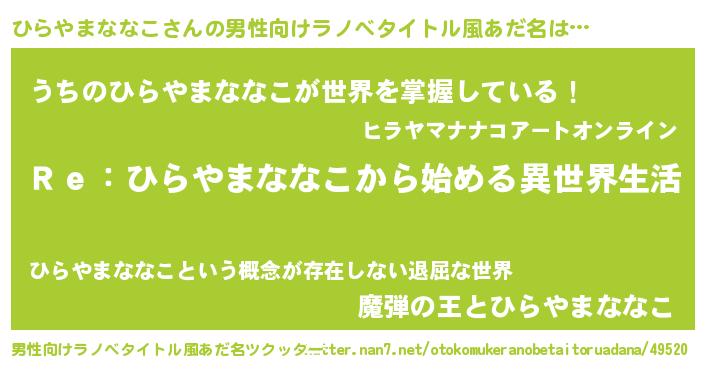 | 女子向けラノベタイトル風あだ名 | 『ひらやまななこストレイドッグス』 |
