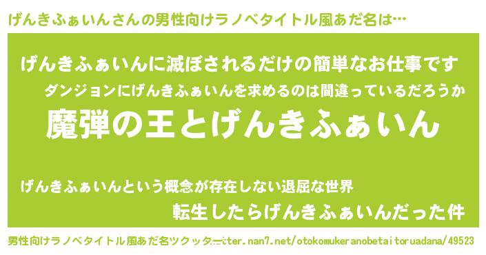 | 意味不明あだ名 | 『住所不定無職げんきふぁいん(9歳)』 |
