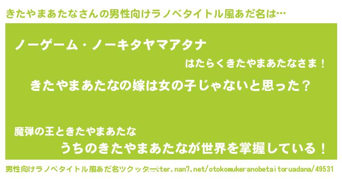| 女子向けラノベタイトル風あだ名 | 『きたやまあたな様がみてる』 |