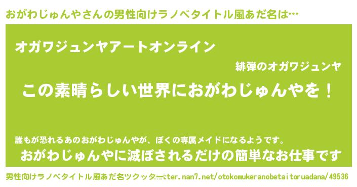 | 女子向けラノベタイトル風あだ名 | 『悪役おがわじゅんやに転生したようですが、知った事ではありません』 |