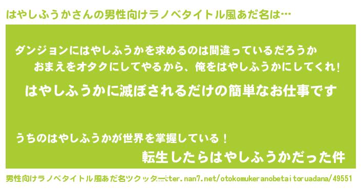| 胡散臭い通販商品みたいなあだ名 | 『伝統あるペンダント…その名も「はやしふうか」』 |