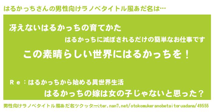 | 胡散臭い通販商品みたいなあだ名 | 『あなたにだけ特別に提供する世界で10本だけ現存している希少なブランデー…その名も「はるかっち」』 |