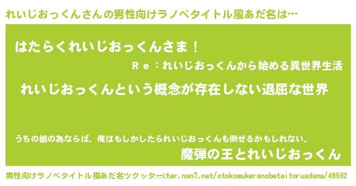 | 女子向けラノベタイトル風あだ名 | 『れいじおっくんの契約王妃』 |