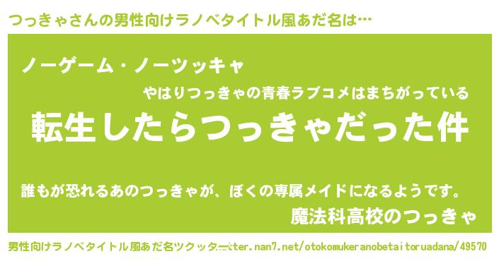 | 料理風あだ名 | 『つっきゃごはん』 |