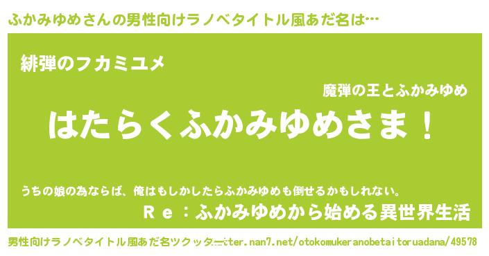 | 意味不明あだ名 | 『自称ふかみゆめ』『永久保存ふかみゆめ』 |