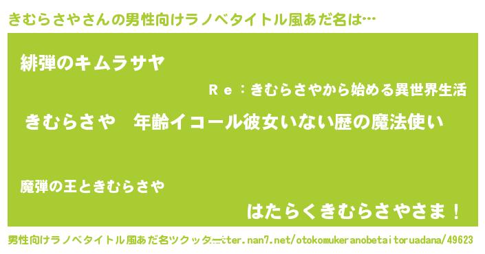 | 女子向けラノベタイトル風あだ名 | 『きむらさやの玉の輿計画!』 |