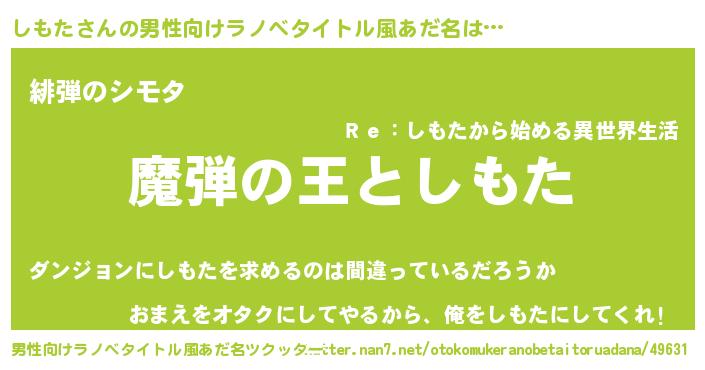 | 意味不明あだ名 | 『住所不定無職しもた(14歳)』『自称しもた』 |