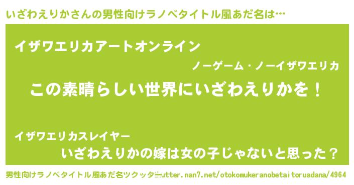 いざわえりかさんの男性向けラノベタイトル風あだ名をツクッター!