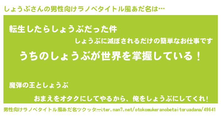 | ヘコむあだ名 | 『酢こんぶ』『しょもー』『しょを』 |