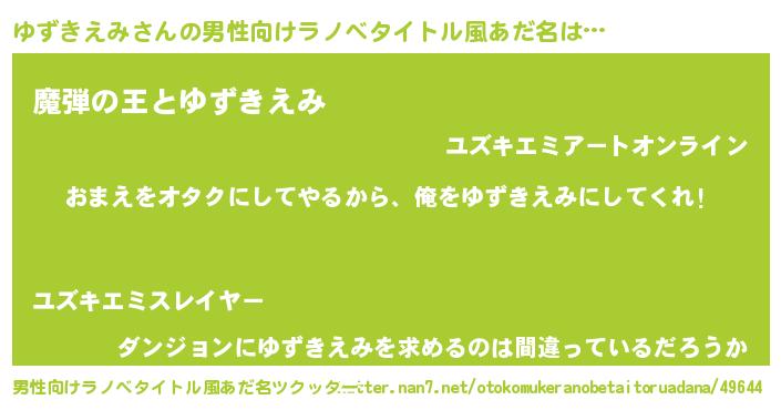 | 女子向けラノベタイトル風あだ名 | 『ゆずきえみ恋絵巻』 |