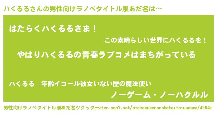 | 欧米人風あだ名 | 『ハくるるクリステル』 |