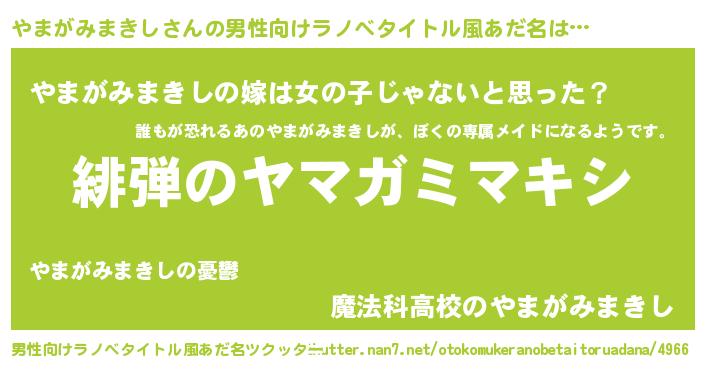 | 意味不明あだ名 | 『とにかく怪しいやまがみまきし』 |