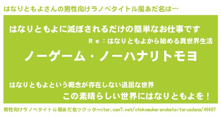| 女子向けラノベタイトル風あだ名 | 『はなりともよ恋絵巻』 |