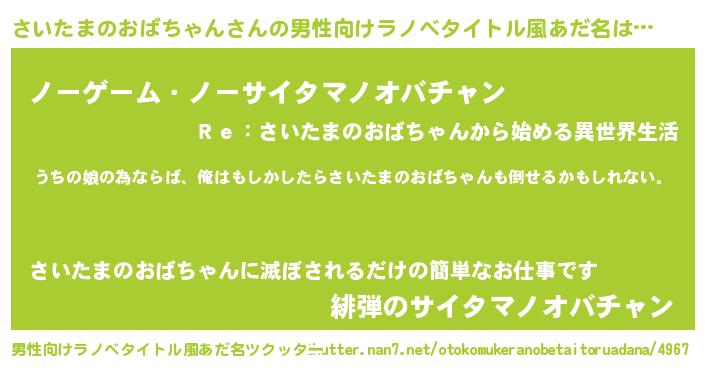 | ファンタジー風あだ名 | 『エターナルサイタマノオバチャンー』 |
