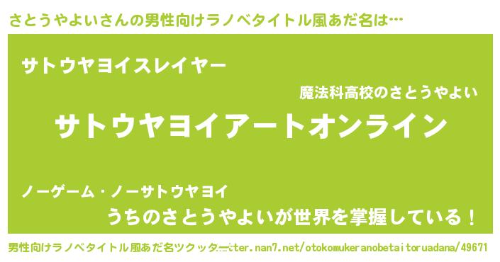 | ヒーロー風カッコイイあだ名 | 『スーパーサトウヤヨイ』『仮面サトダー』 |
