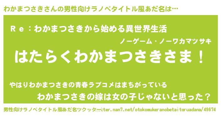 | 意味不明あだ名 | 『自称わかまつさき』 |