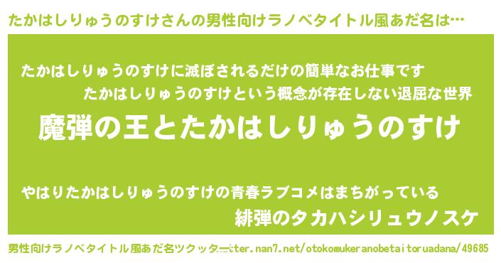 | ヘコむあだ名 | 『たかはしりゅうのすけ(苦笑)』『なまこ酢』 |