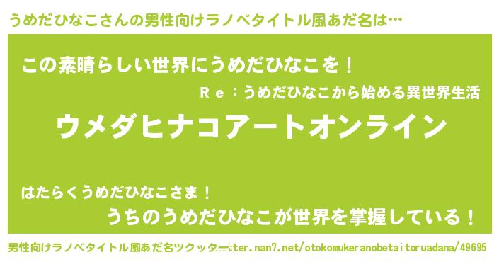 | 女子向けラノベタイトル風あだ名 | 『うめだひなこ姫と円卓の騎士』 |