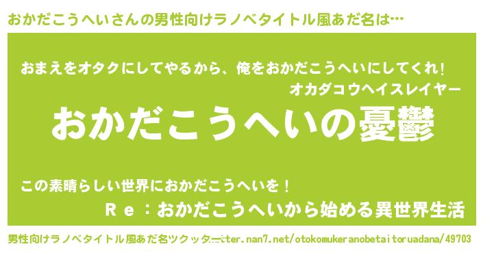 女子向けラノベタイトル風あだ名 | 『(仮)おかだこうへいのやんごとなき事情』 |