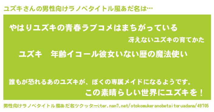 | 女子向けラノベタイトル風あだ名 | 『ユズキの玉の輿計画!』 |