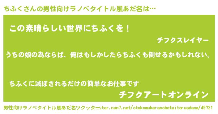 | 女子向けラノベタイトル風あだ名 | 『ちふくの婚約者』 |