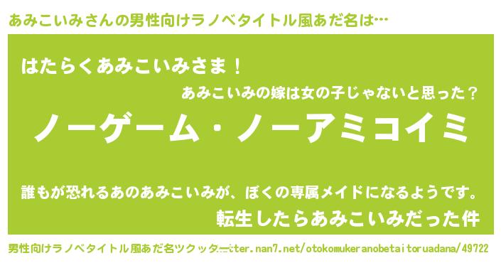 あみこいみさんの男性向けラノベタイトル風あだ名をツクッター!