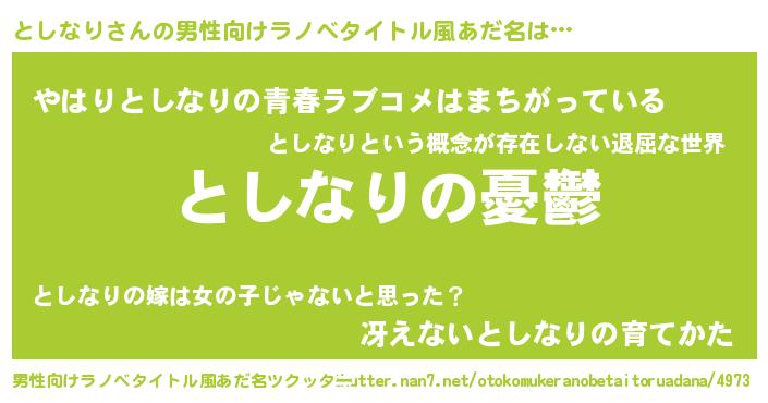 | 胡散臭い通販商品みたいなあだ名 | 『必ず成功するブレスレット…その名も「としなり」』 |