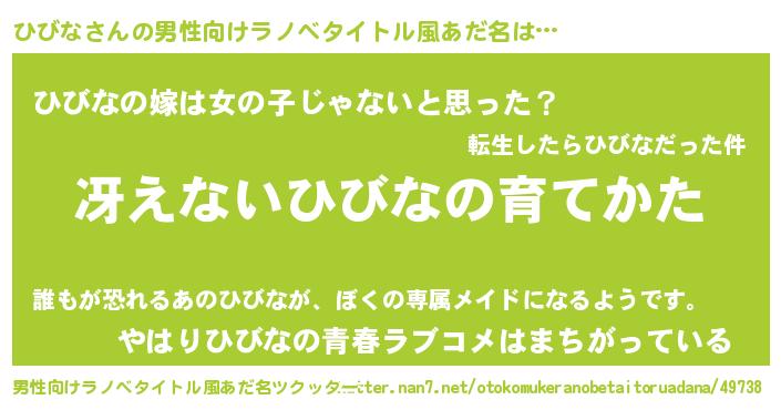 | 胡散臭い通販商品みたいなあだ名 | 『伝統あるサプリメント…その名も「ひびな」』 |