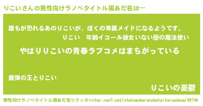 | 女子向けラノベタイトル風あだ名 | 『りこいの雑貨屋さん』 |