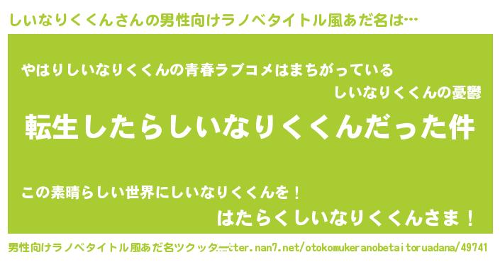 | 女子向けラノベタイトル風あだ名 | 『しいなりくくんの玉の輿計画!』 |