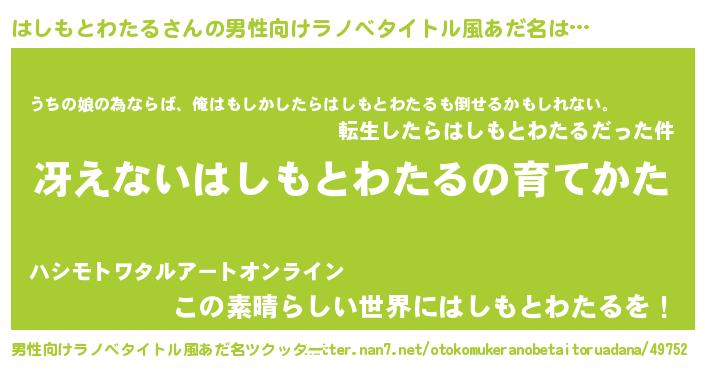 | 胡散臭い通販商品みたいなあだ名 | 『世界が平和になる高級そうな絵画…その名も「はしもとわたる」』 |
