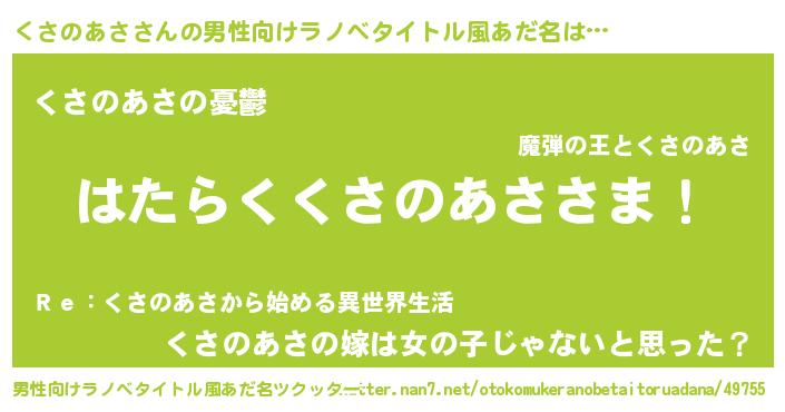 | 意味不明あだ名 | 『ペロリンくさのあさ』『自称くさのあさ』 |