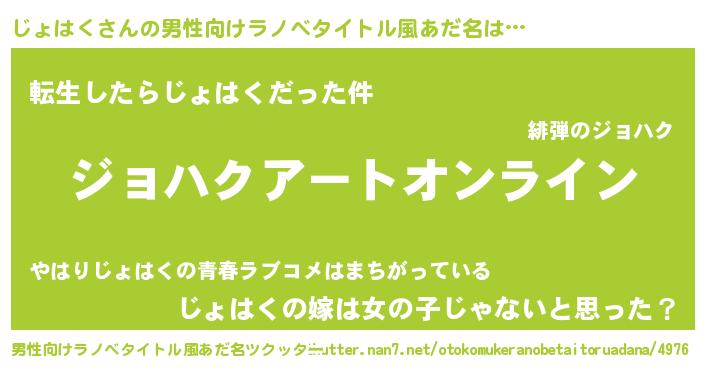 | ヒーロー風カッコイイあだ名 | 『スーパージョハク』『幻影騎士ジョ』 |