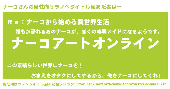 | 胡散臭い通販商品みたいなあだ名 | 『モテモテ間違いなし霊験あらたかなお札…その名も「ナーコ」』 |