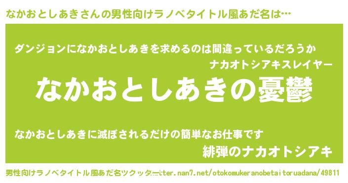 | 胡散臭い通販商品みたいなあだ名 | 『必ず成功する霊験あらたかなお札…その名も「なかおとしあき」』 |