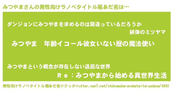 | ヒーロー風カッコイイあだ名 | 『天弓騎士ミツ』『超時空戦士ミツヤマ』 |